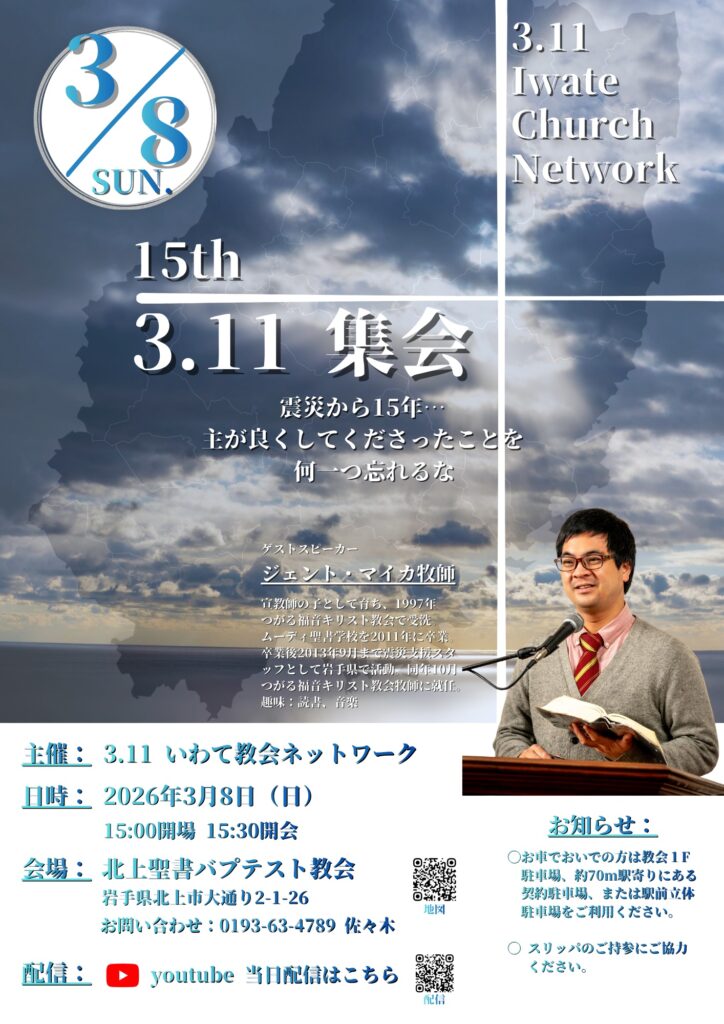 - 会場:北上聖書バプテスト教会(北上市大通り2-1-26)